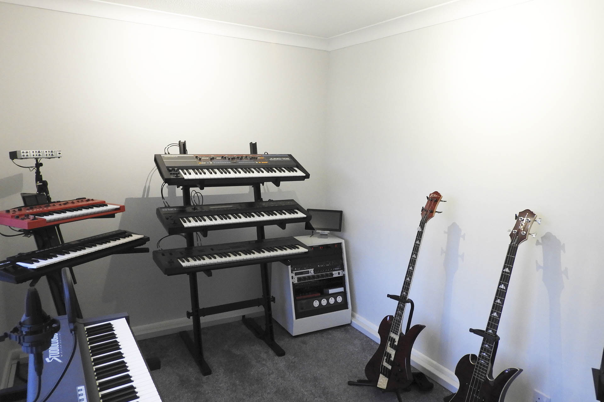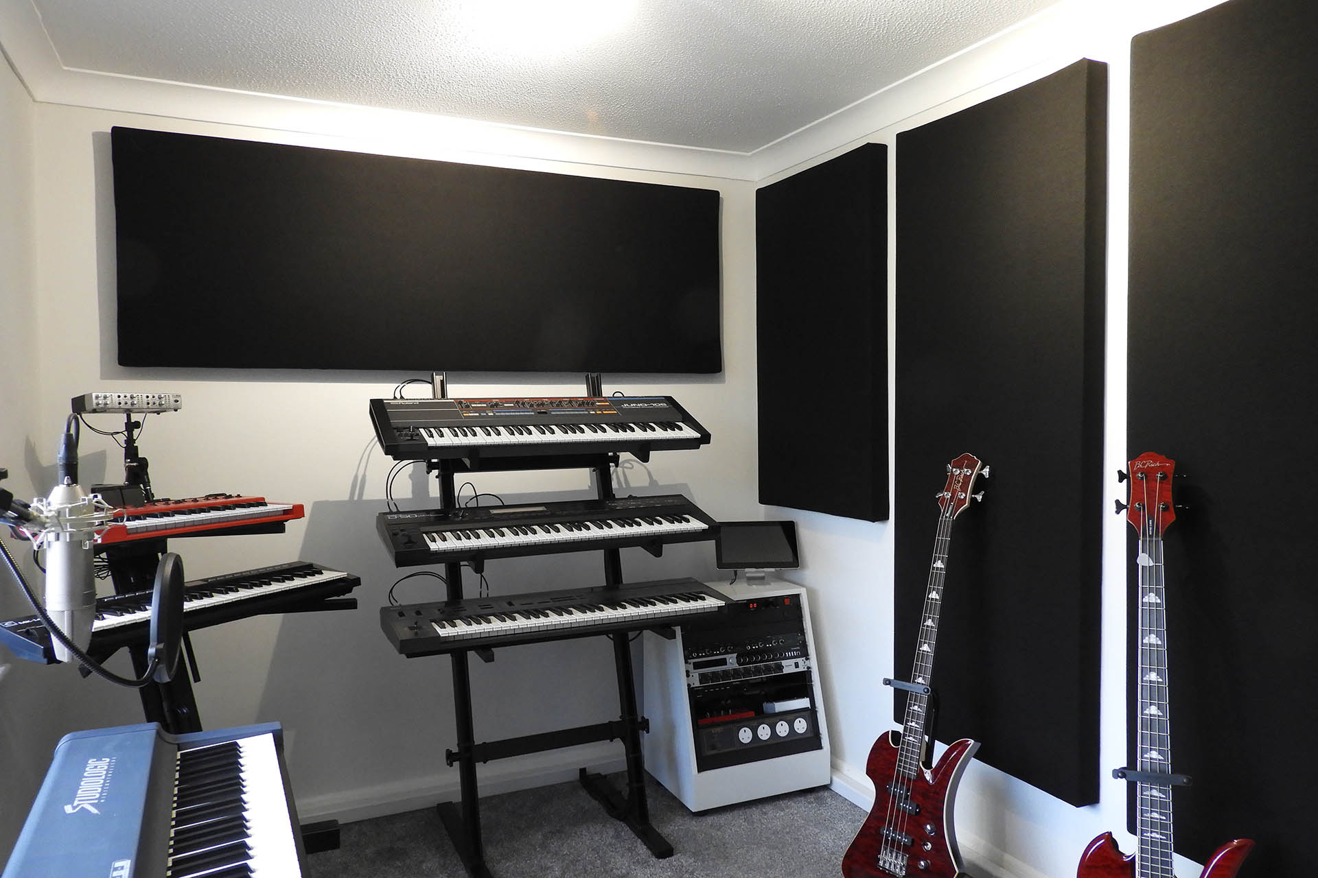 And here's my keyboard room. Like my mic. room, I might need a couple of small in-fill panels but we'll see how it goes. On the other side of the camera, I have a couple of studio monitors so I need to be careful. I don't want this room to be totally dead.