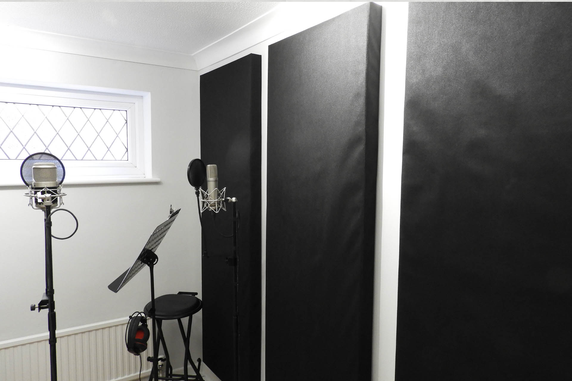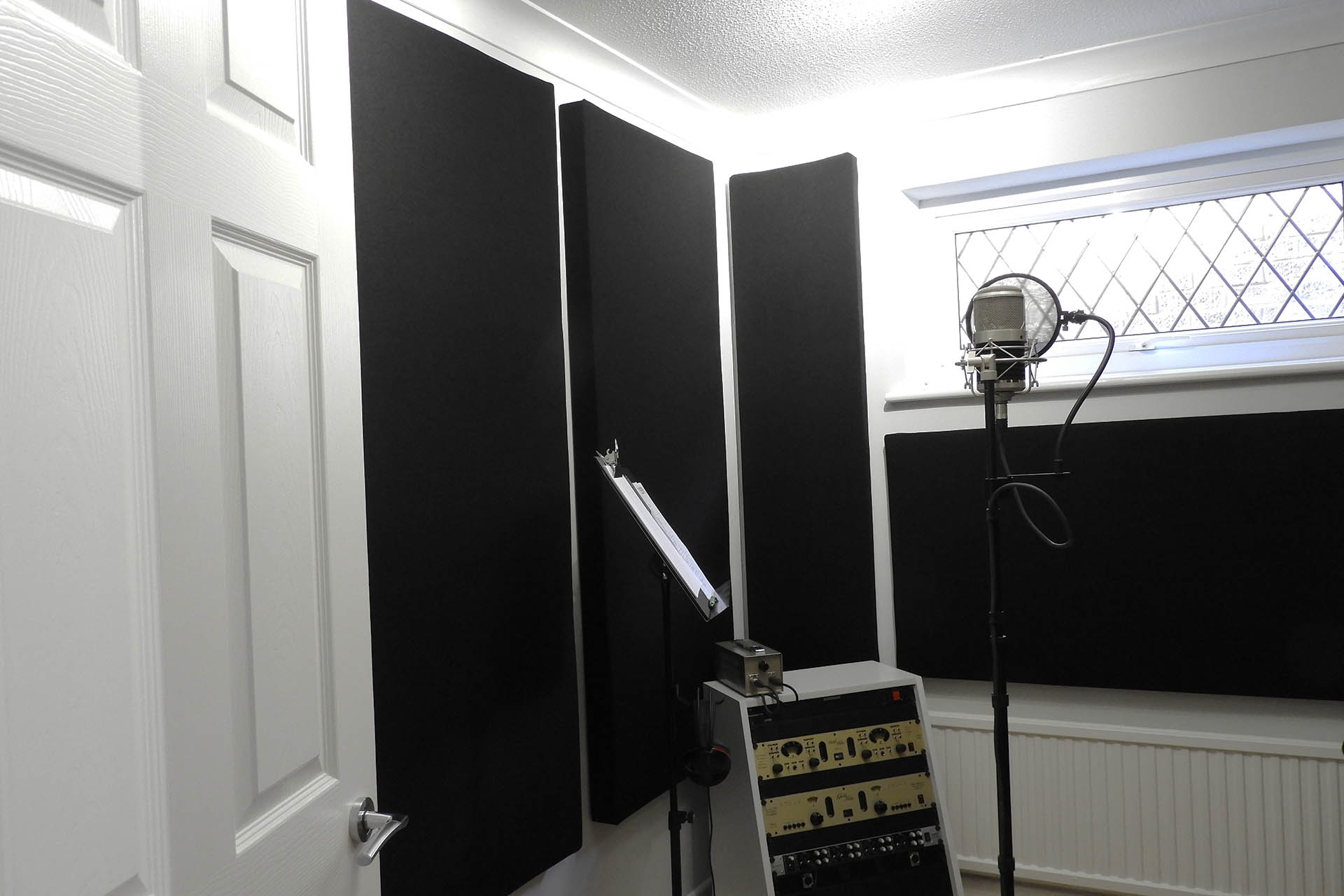 Lighting is totally subjective and I have to say that in my opinion, the addition of the black panels has softened the feel of my mic. room and my keyboard room in a (subjectively) positive way, making them kind of atmospheric and less clinical and laboratory-like. There's still ample light to see written and printed material clearly and read settings on equipment but it's just well, softer. I'm sorry but I just don't know how else to describe the change and it's extremely difficult to photograph before and after with any degree that would adequately demonstrate the difference.