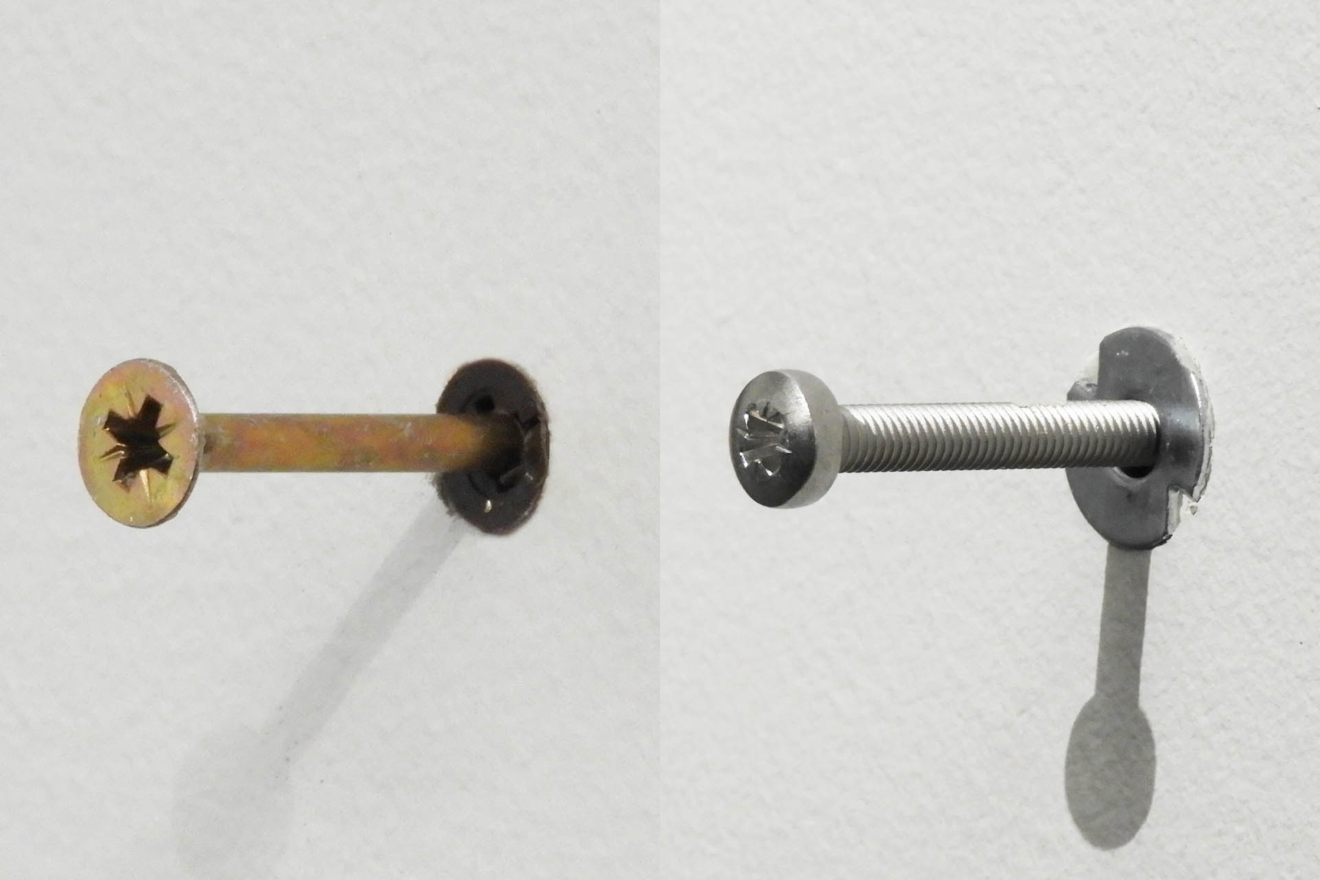 Anyway, in the brick wall, I used rawl plugs and in the stud wall, I used heavy-duty hollow wall bolts, the kind that require a setting tool. All screws were M5 x 80mm, providing a good length of screw in the wall with between 20mm and 25mm sticking out, on which to hang the panels.