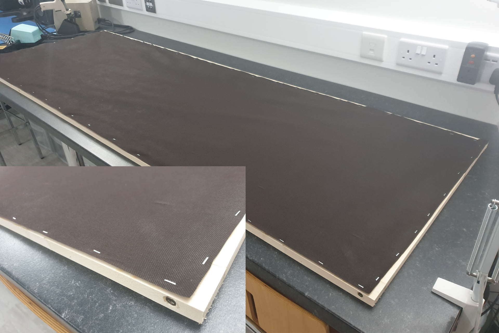 Anyway, the Camira Cara turned up and the fully covered DIY acoustic panels do actually look really good. Comparing the picture below with the previous picture, you can blatantly see that the acoustic cloth finishes the panels nicely and for example, doesn't have the same sagginess as the membrane.