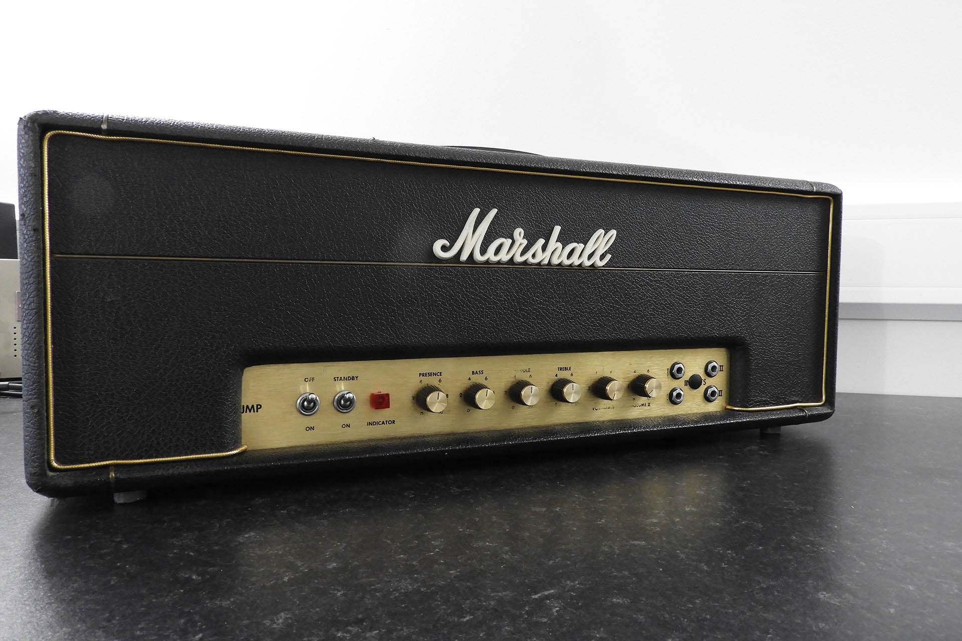 In the middle of the four input sockets on the Marshall, there was a potentiometer. I managed to clean up the hole and insert a plastic cap.