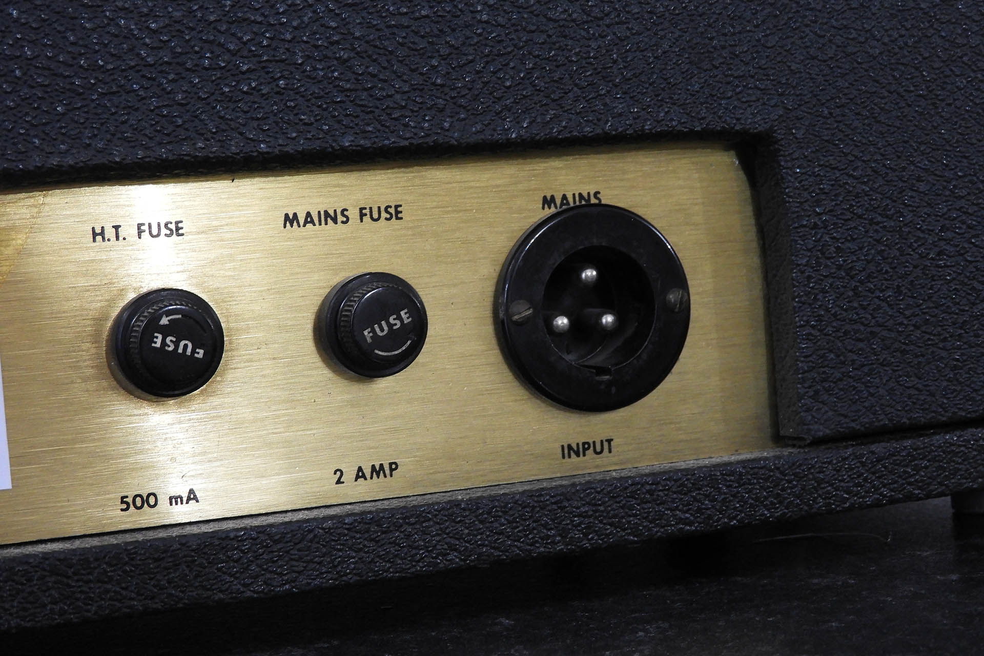 Another annoyance is that some mods involved adding potentiometers and / or sockets. All you can do is tidy up holes now left in the chassis, as best you can. It's all really quite upsetting. In the picture below, you can just make out a hole in the back of the Bassman which had an 'auxiliary' mains lead output. WTF?!?!?
