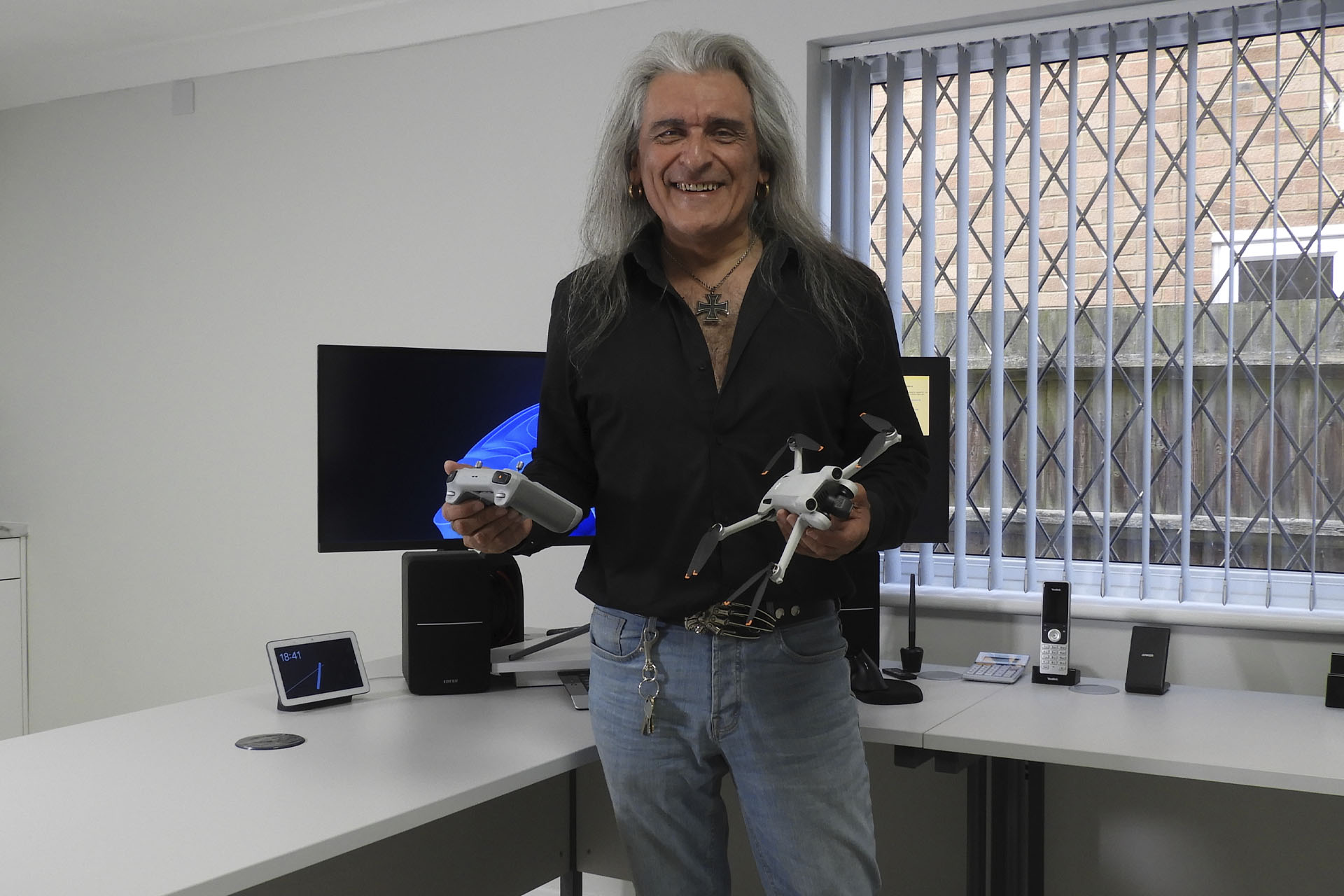 Here's me in July 2022 after having just qualified as a drone pilot. I'm holding one of my favourite DJI drones.