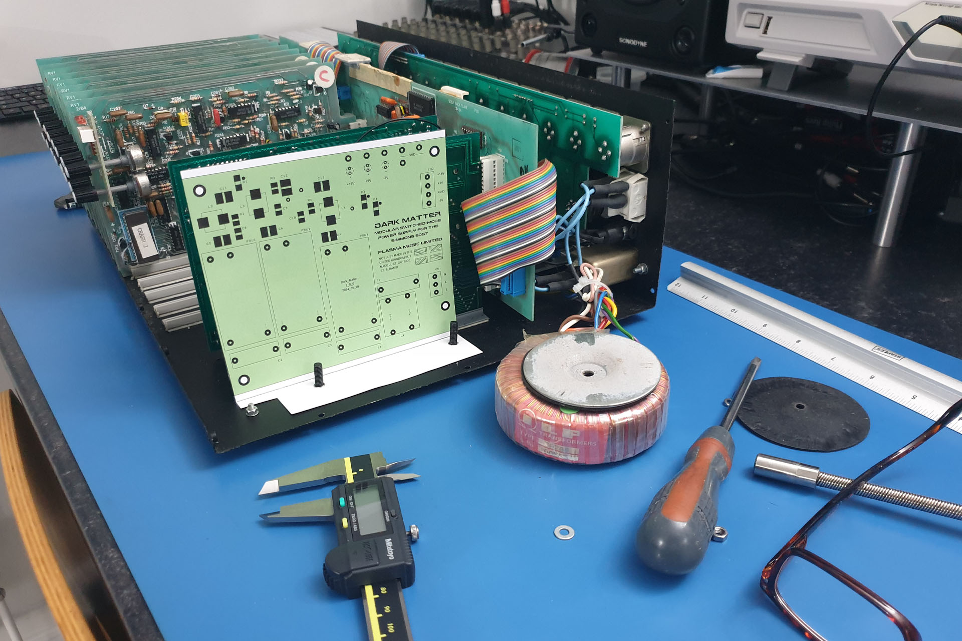 Subsequently, SDS7 #70320 became the platform on which I developed Pleiades lithium battery conversion and uniPulse MIDI to trigger platform, Dark Matter modular switched-mode power supply, AMEP advanced memory expansion pack and NC-7 noise cancelling snap-in, all of which will be launching very soon. Indeed, I’m delighted to announce that SDS7 #70320 is actually running Pleiades, Dark Matter and NC-7. AMEP will be here very shortly. In fact, the pre-production PCBs should arrive today.