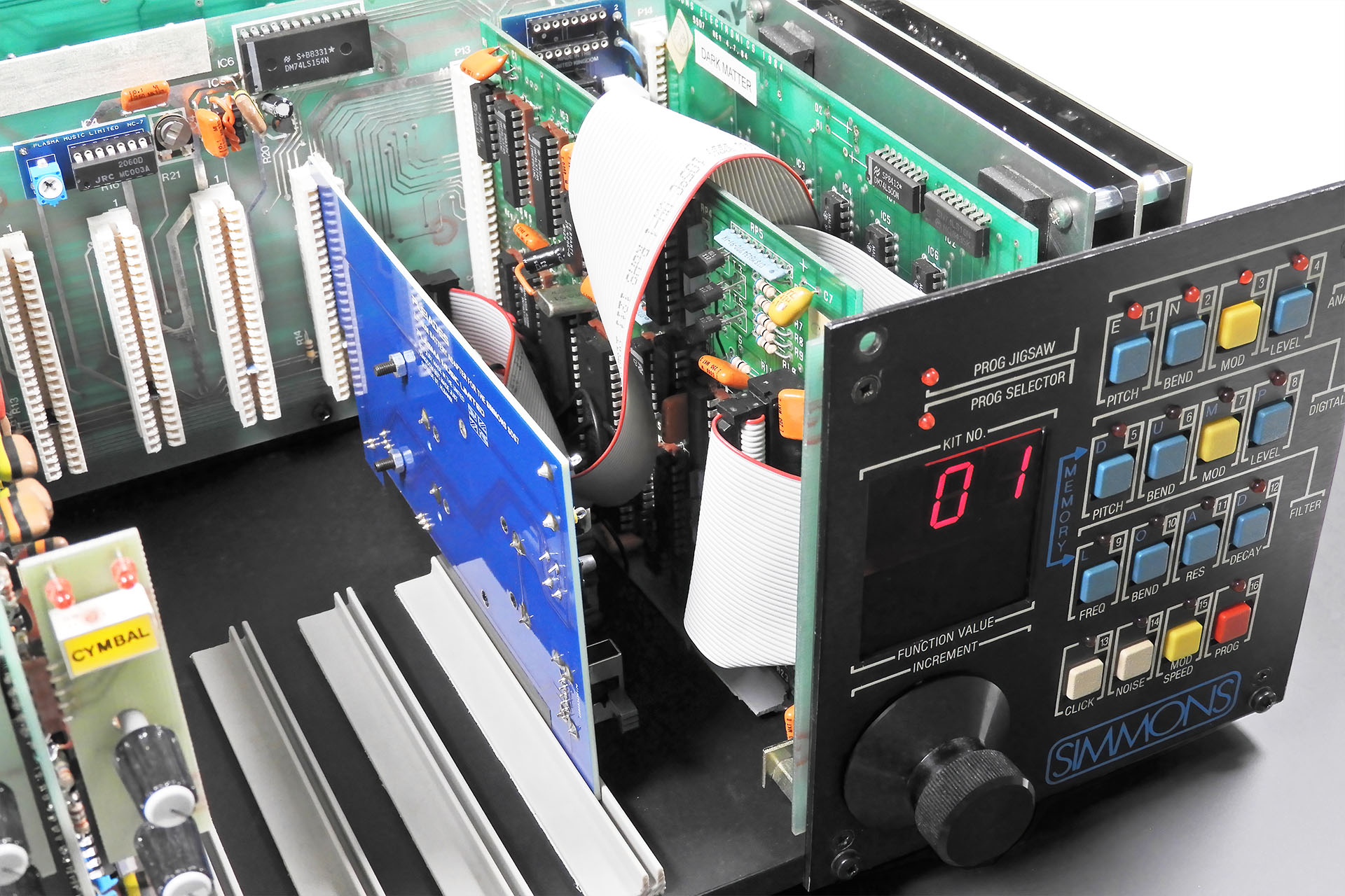 Today is a BIG day. Today, my test Simmons SDS7 is back in one piece! SDS7 serial number 70320 was finally put back together after several months of doing exactly what I bought it for… to host the development of a small range of peripherals for one of my favourite electronic drum systems. 😊