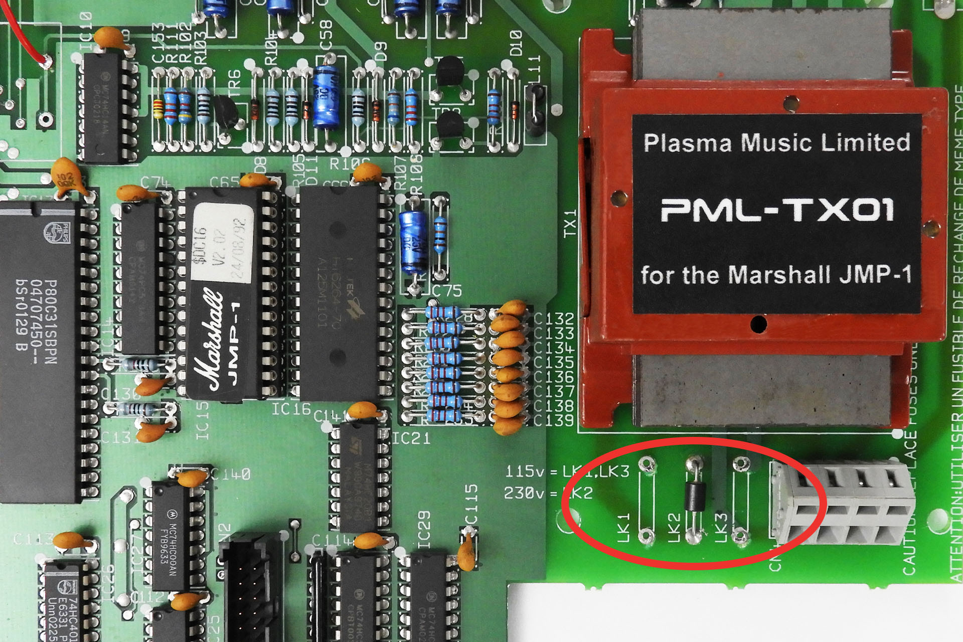 Marshall JMP-1 voltage selection with PML-TX01