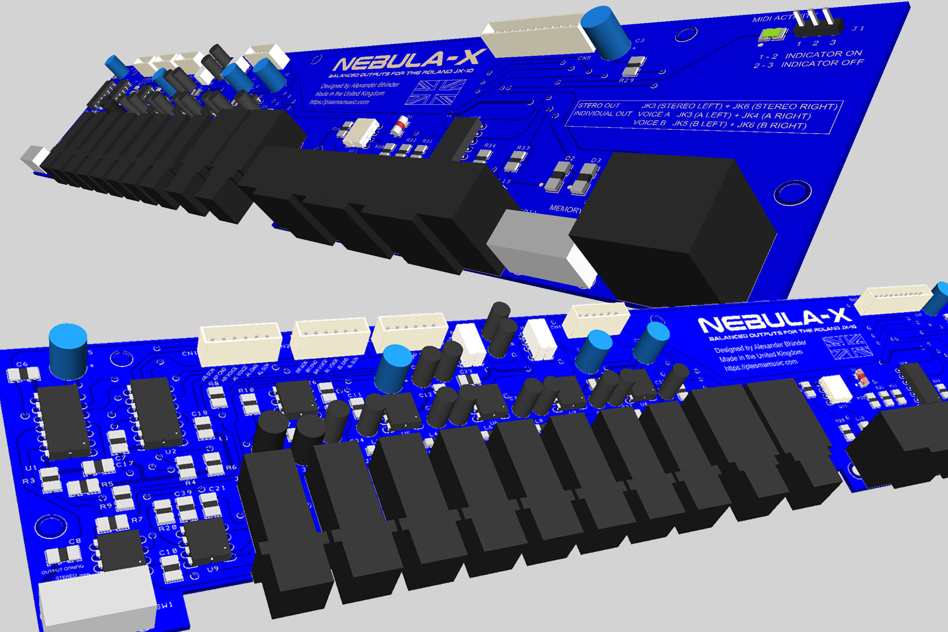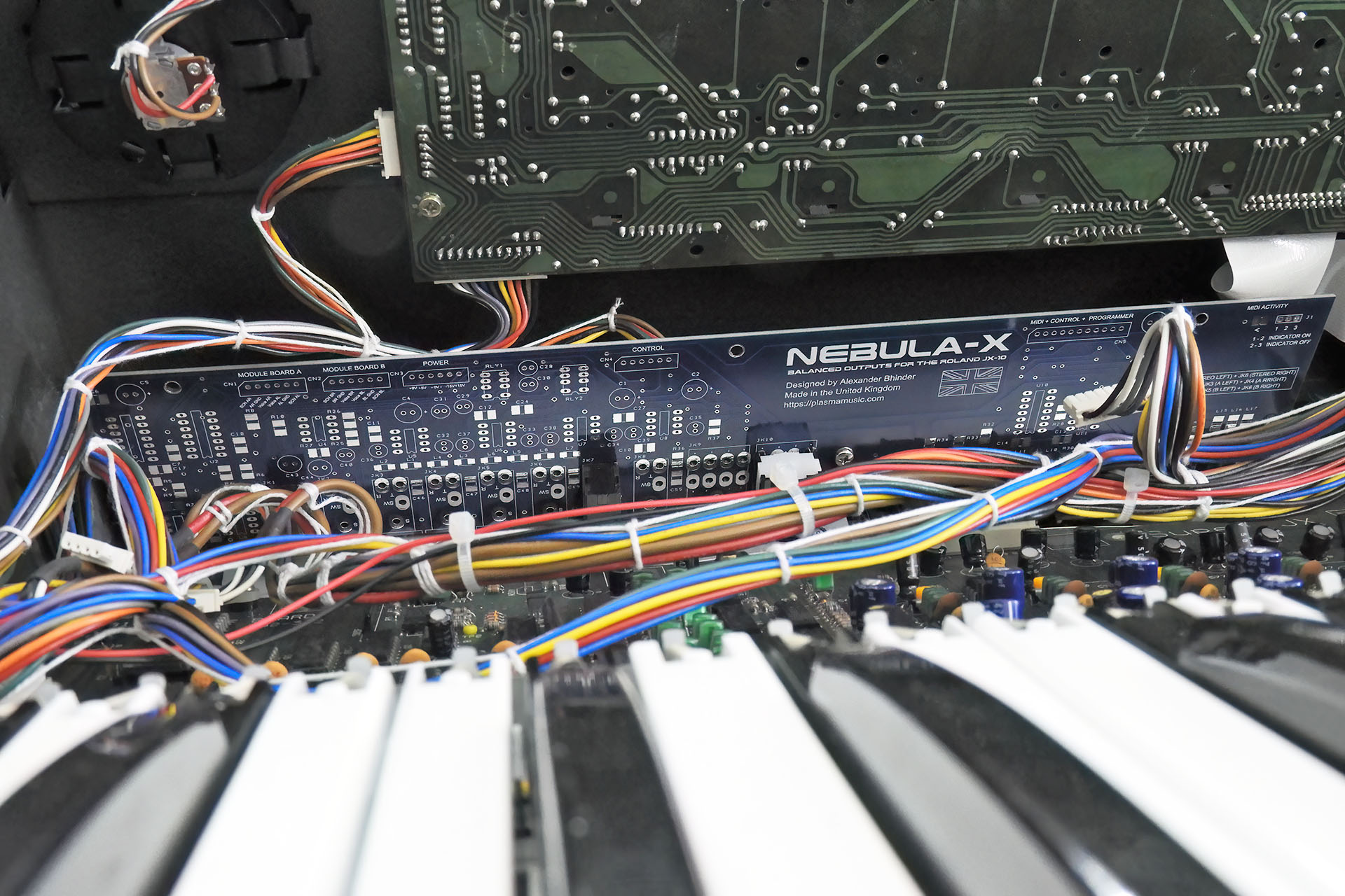 Like Nebula balanced outputs jack-board for the Roland MKS-70, Nebula-X is intended to provide balanced outputs for the Roland JX-10.