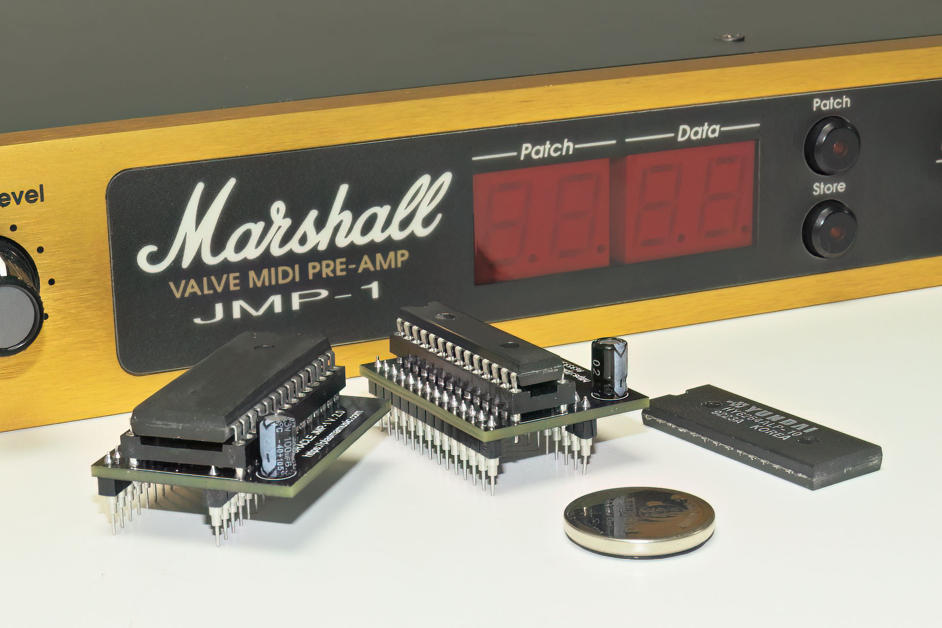 I've been toiling with the idea of replacing the static 8k x 8 RAM in our favourite MIDI valve pre-amp with a non-volatile SRAM (nvSRAM) for long time, now and I'm delighted to report that after a lot of work, including testing over recent weeks, my Oracle battery eliminator for the Marshall JMP-1 is finally here.