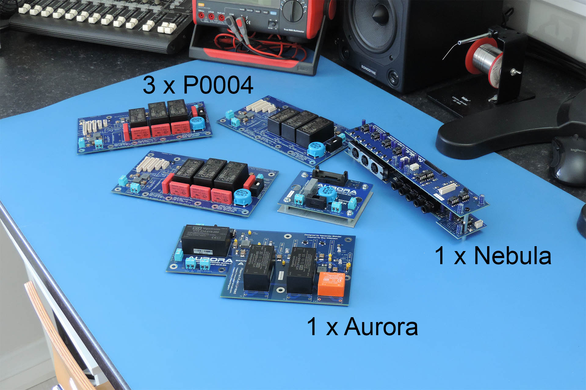 Pictured are three of Guy’s P0004 power supplies for the MKS-70, one of my Aurora power supplies for the MKS-80 and one of my Nebula output boards which gives the MKS-70 balanced outputs and upgraded MIDI hardware.