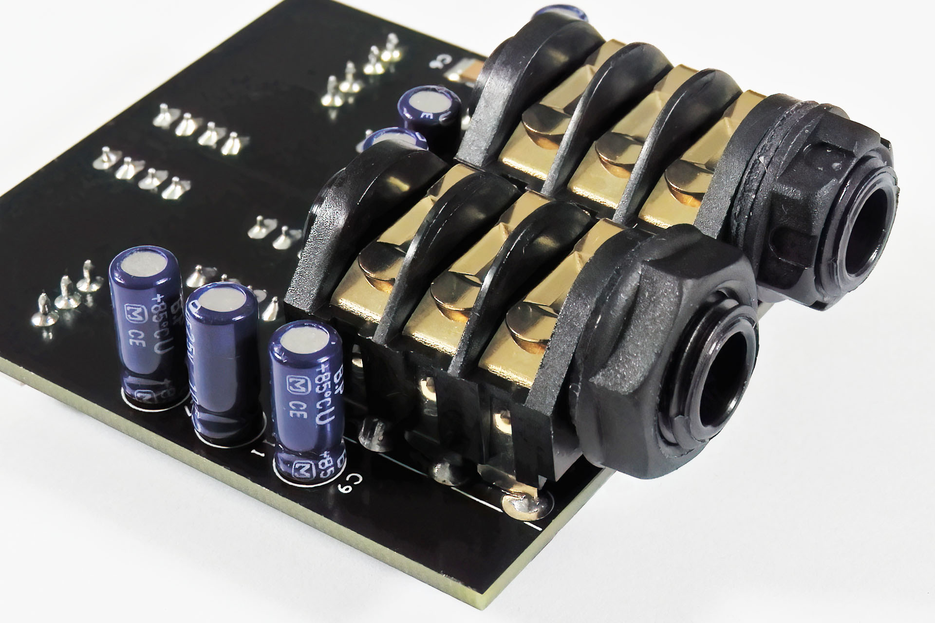 Of course the original two-pole sockets have to removed and (of course) you can't just connect three-pole (balanced) sockets in their place. My solution was to make a small, light-weight PCB that would mount using the rear sockets. Further connections to power and audio are made via Molex headers.