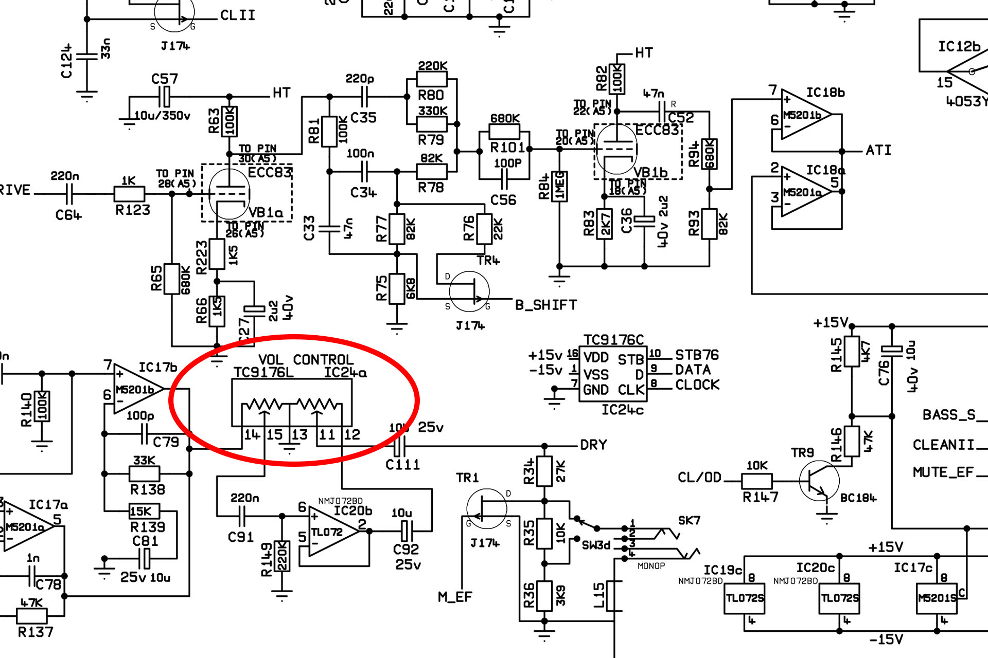 One thing that makes the JMP-1 unique amongst guitar pre-amps of the time, is the fact that it's analogue. Yeah, I know what you're thinking; "How can that be when it's got MIDI and presets?" Well, just like many early MIDI synthesisers, the audio is all analogue. In the JMP-1 specifically, the audio signal (the output from your guitar) passes through analogue circuitry only but some of it is digitally controlled, thanks to the use of voltage controlled amplifiers (VCAs). A preset comprises a whole load of noughts and ones which are converted to analogue control voltages which in turn, are used to set the gain of those VCAs, hence provide variable gain, volume, tone controls, etc.