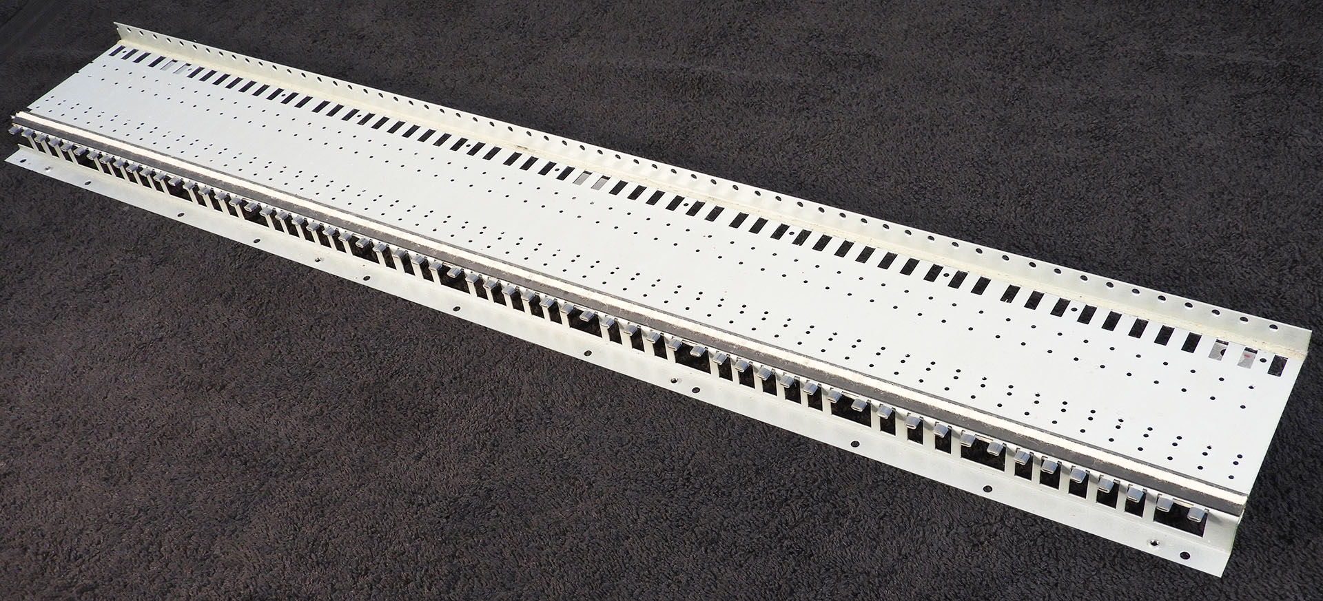 The aftertouch sensors in early instruments were extremely basic. In the case of the JX-8P, the sensor comprised of a very thin material which had two copper tracks on top of it. In fact a long thin PCB with two wide tracks would be a fair description! On top of the tracks are five conductive rubber strips, then another metal (steel) strip on top of the conductive rubber. Hang on, I’m not finished yet. The whole thing was housed in a kind of rubber extrusion, which in turn, had a strip of keyboard felt running its length. This elaborate assembly sits on top of the keyboard chassis, just under the front of the keys.