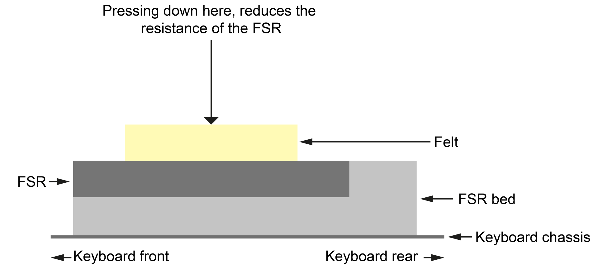 Being basically refined versions of the type of carbon-track sensors that Roland originally used but delivering a lot more dynamic range as well as other benefits, FSRs are perfect for this kind of application. In fact, modern aftertouch sensors and even some drum pads use FSRs. The principle is the same but the resistive polymer material is of a modern composition and the manufacturing process makes FSRs considerably more robust and reliable than previous pressure sensors.