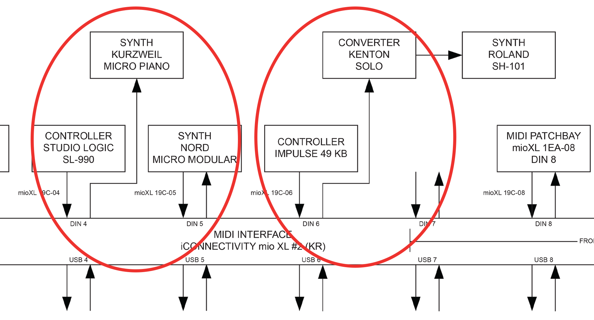 - Take a close look at DIN ports 4 and 6 on my mio XL #2, in the diagram below.