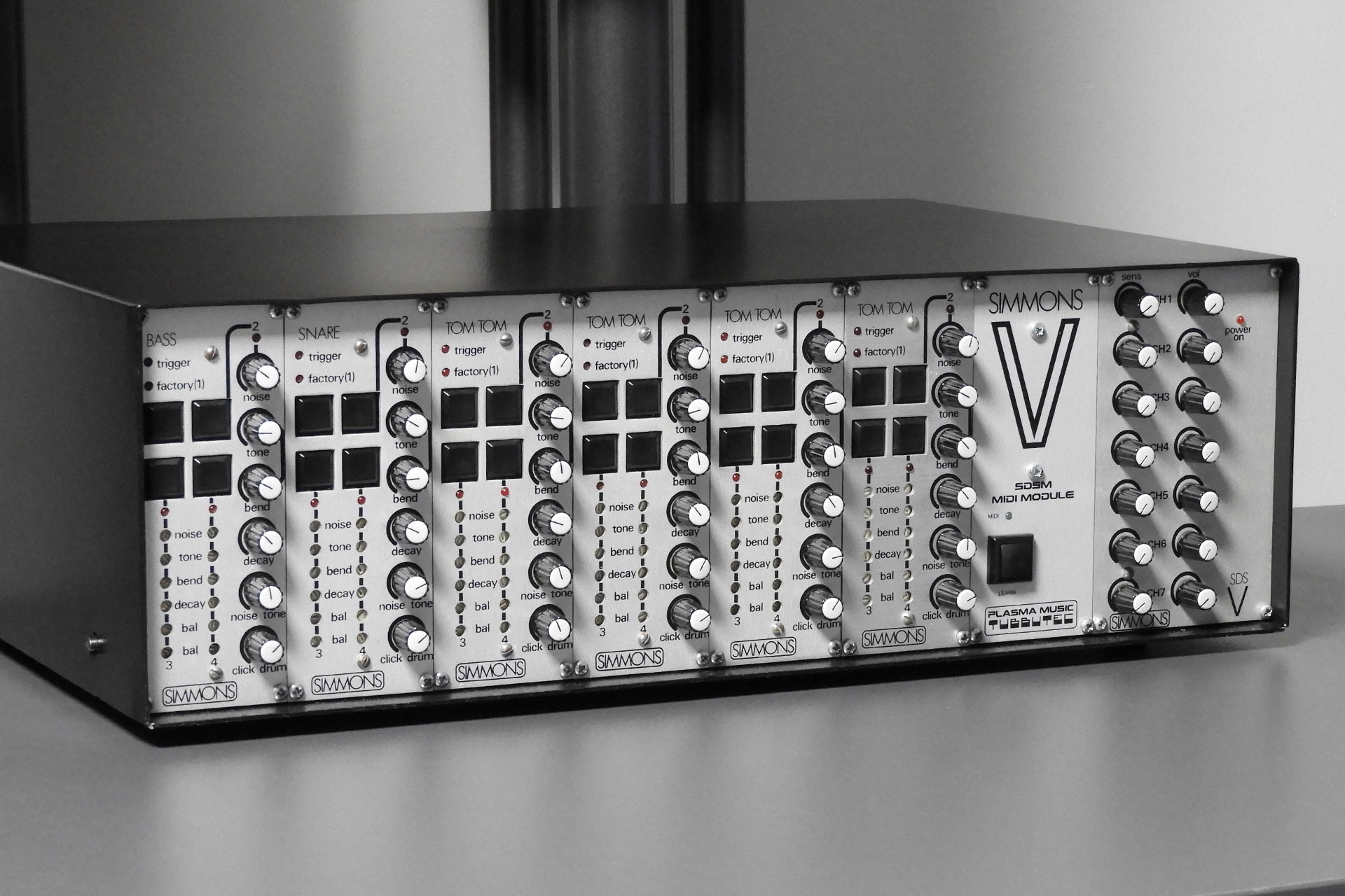 SDSM - MIDI for the Simmons SDSV does what it says on the packet. With the addition of a Tubbutec uniPulse MIDI to trigger converter, SDSM makes it really easy to add MIDI triggering to the Simmons SDSV WITHOUT drilling holes or making any other permanent modifications to your vintage synthesiser drum system.