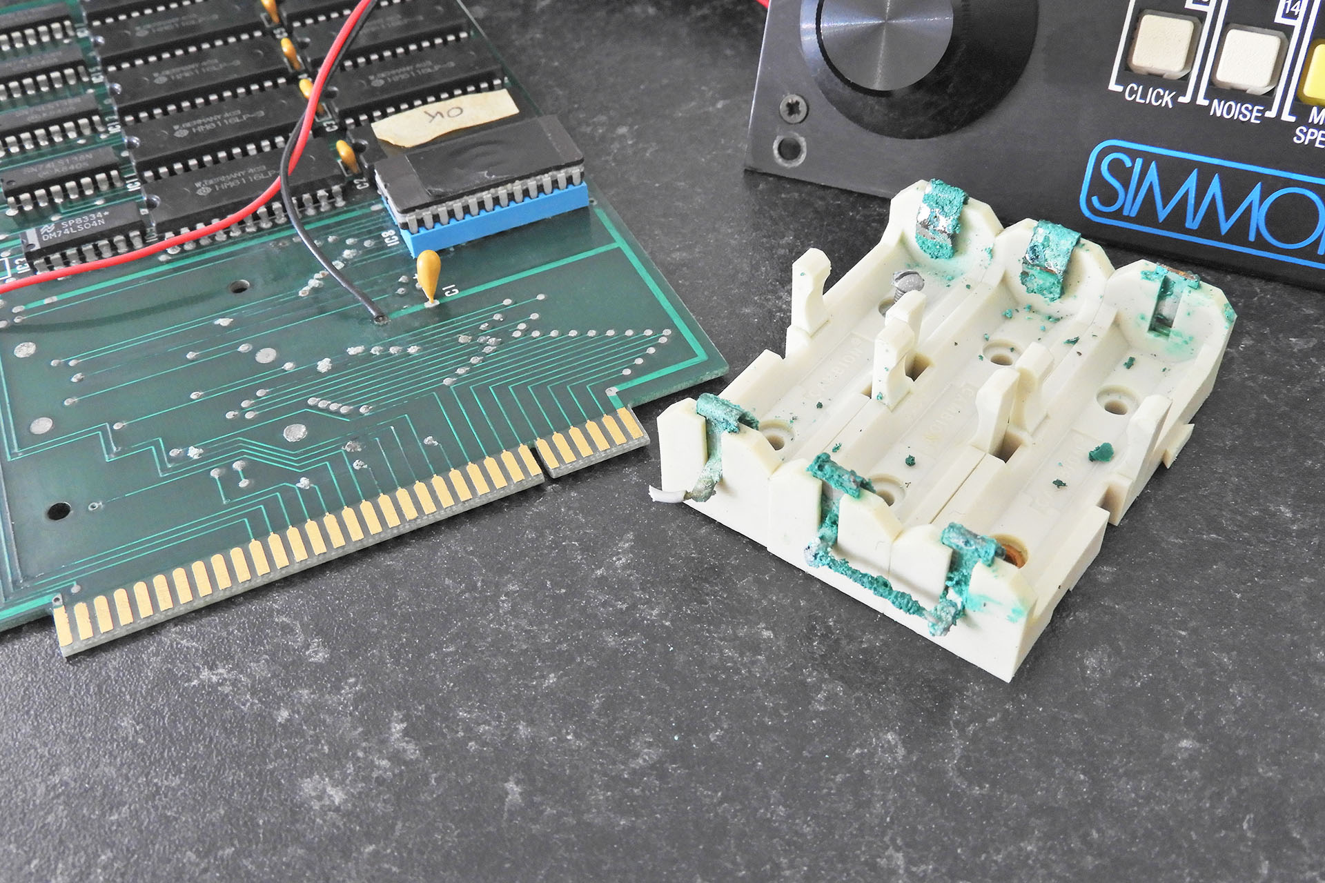 So, back to batteries... Amongst instruments like the afore mentioned Cheetah MS6 and true vintage gems like the Sequential Circuits Prophet V, a Simmons SDS7 battery leak is something I've seen quite a few times over the years, or should I say decades. Don't think that everything can be fixed. It took me two years to concede that the last Prophet V I had in with a leaked battery wasn't salvageable. It's incredibly sad and something that would potentially 'brick' an iconic piece of vintage music tech' so please take note: If you have a piece of old gear like this, do check what kind of battery it has. If it's got a NiCd battery, then make sure it's charged regularly.