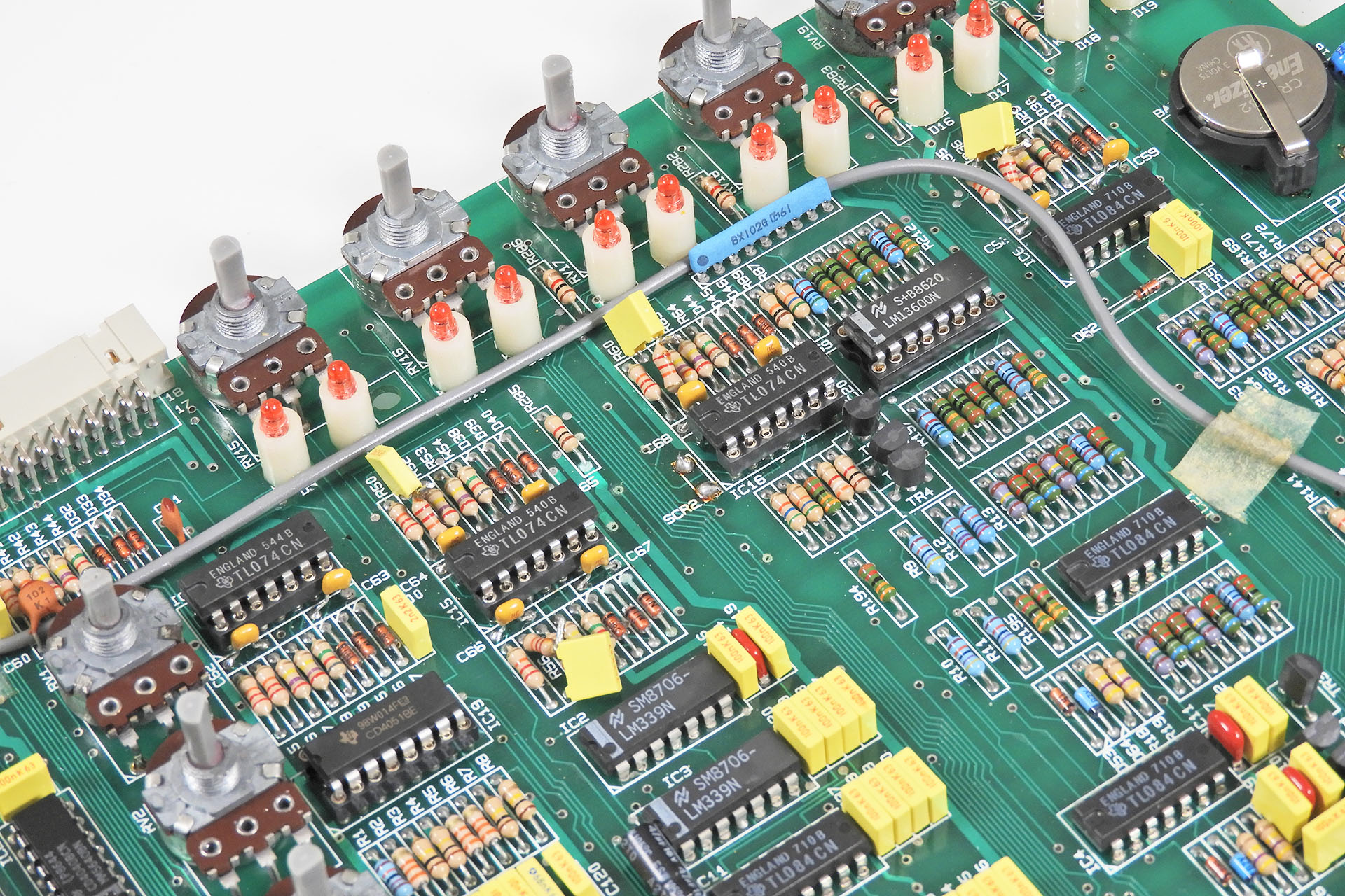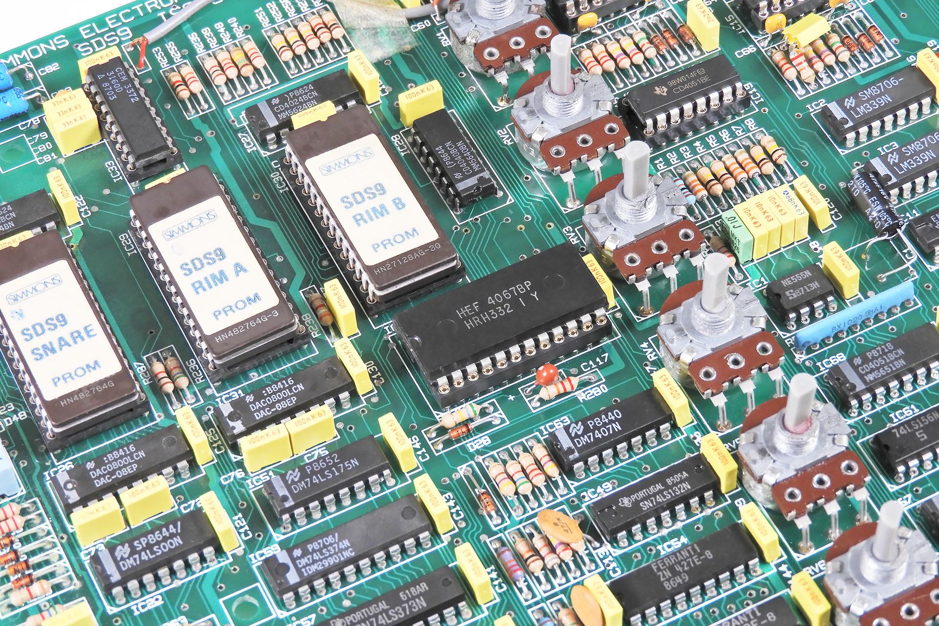 Now that I had a 'silent' SDS9, I looked at the duff pad trigger input on the low-tom. That was down to a broken trace between one of those 1nF capacitors and the associated TL084.