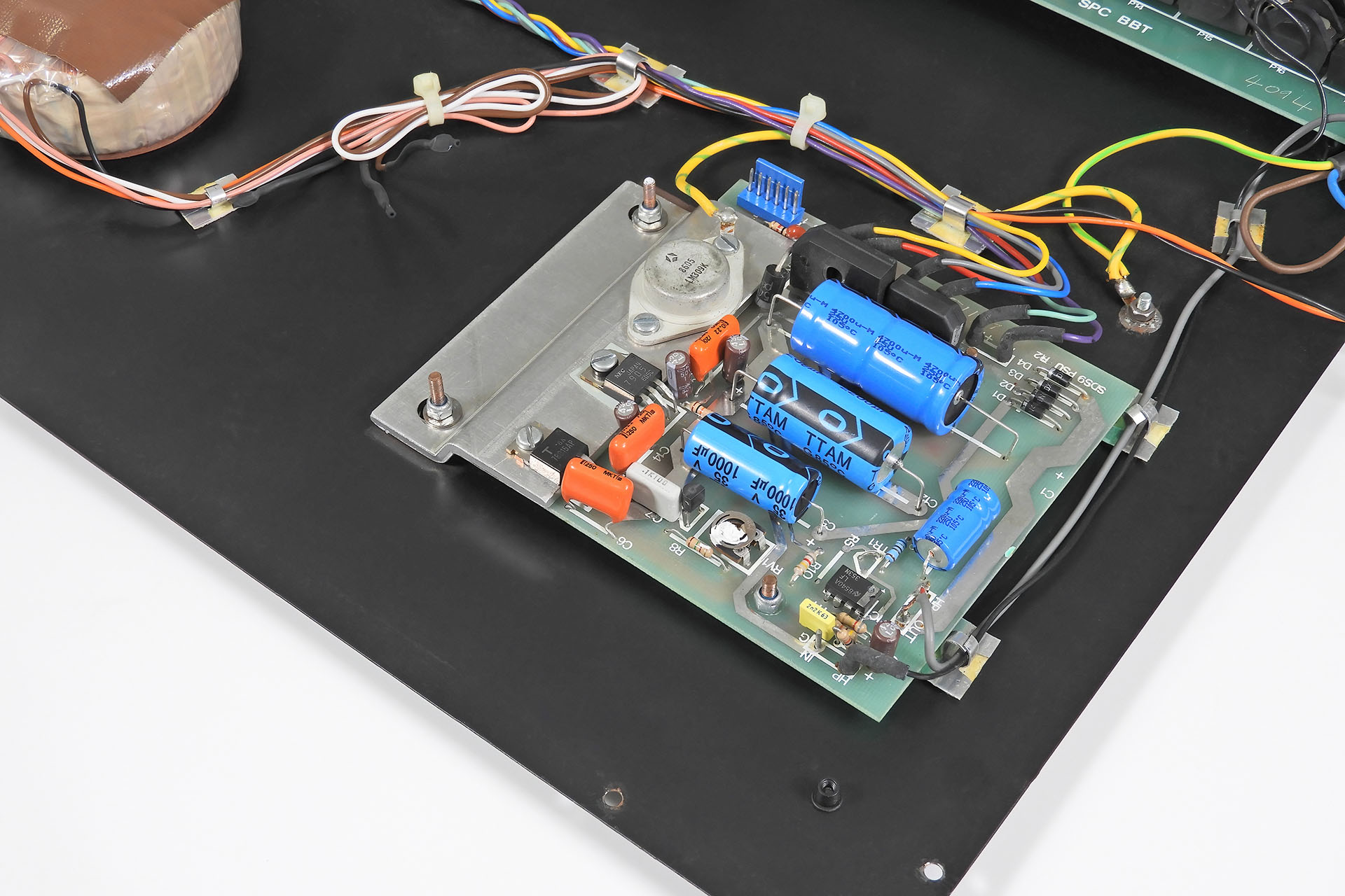 So, I decided to replace all the electrolytic capacitors on the power supply. Actually, while I was at it and since there weren't too many electrolytics on the main-board, I changed them, too. If looked after and regularly used, the recap might not have been necessary but remember that this was a loft-find.