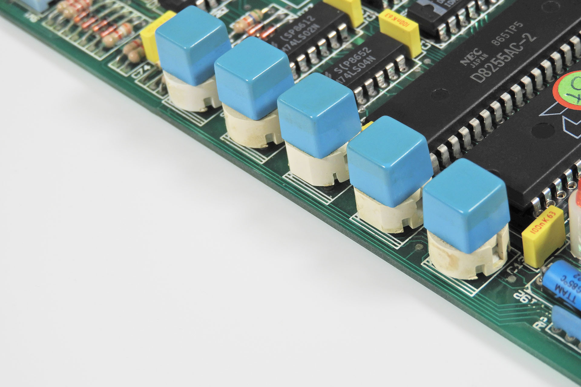 I managed to convince Simon, the customer of the first SDS9, that I should correct the colour layout of his unit's knob caps. The knob caps on the second SDS9 were seriously faded, like the grey caps were brown and the blue caps were almost green. Hence, both units got a mild cosmetic make-over.