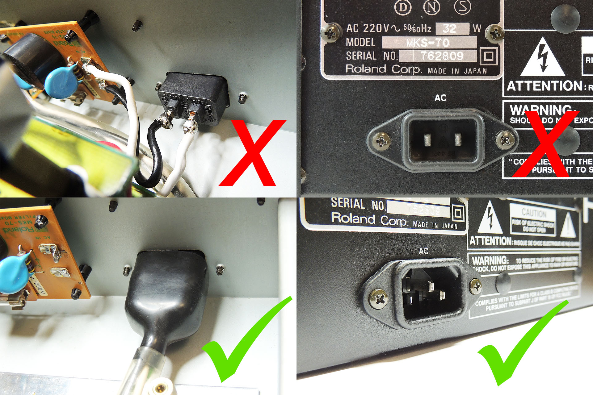 Anyone who has a Roland MKS-80 with a power transformer that’s not native to their region, now has the option to upgrade the power supply in their machine and plug it straight into their mains supply, without the need of going through an external transformer.