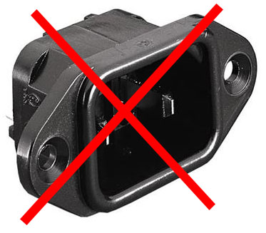 It is paramount that if fitted, a 2-pin IEC C10 mains socket be replaced with a 3-pin IEC C14 mains socket and that the chassis and the P0004 are connected to earth.