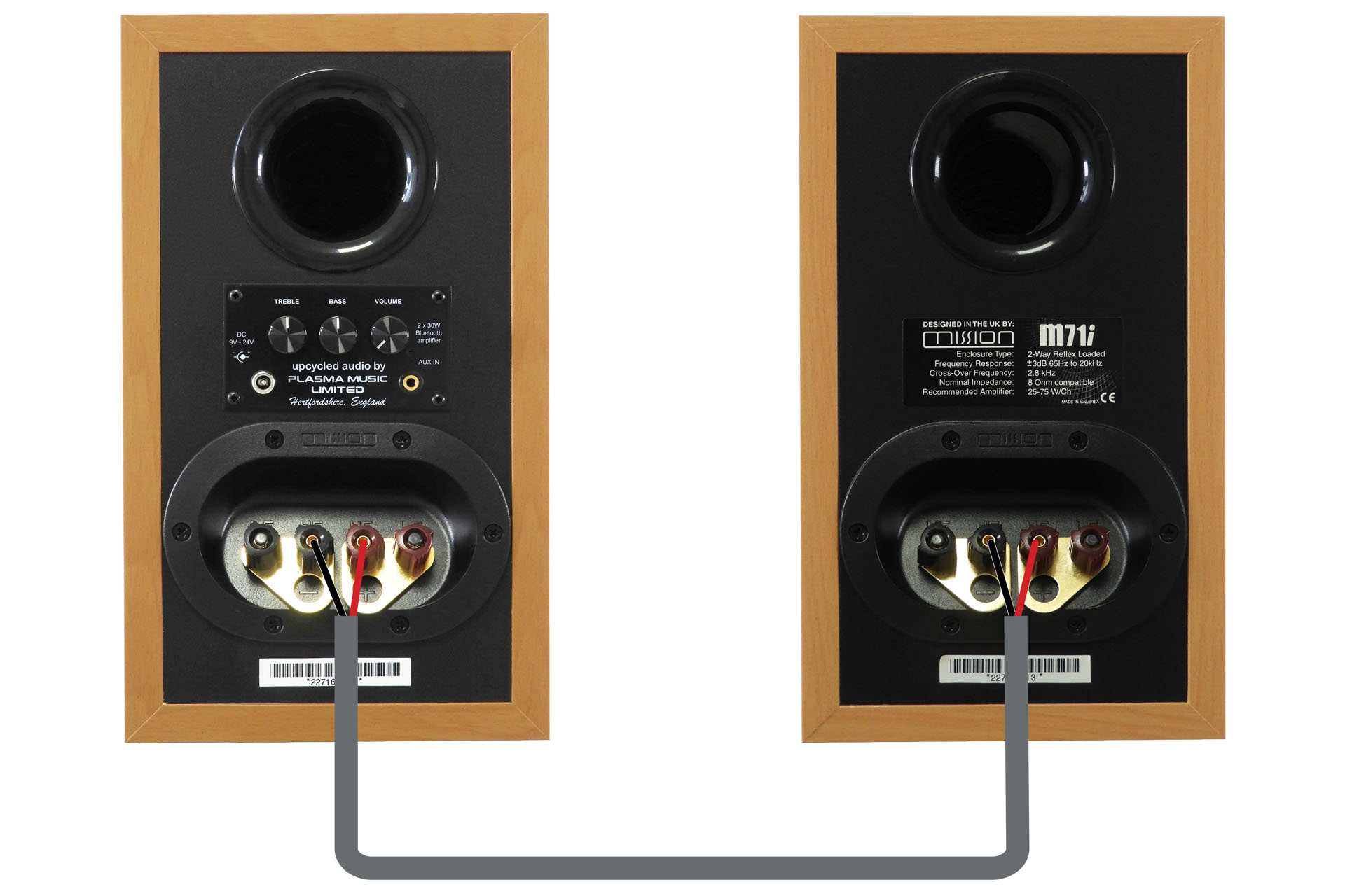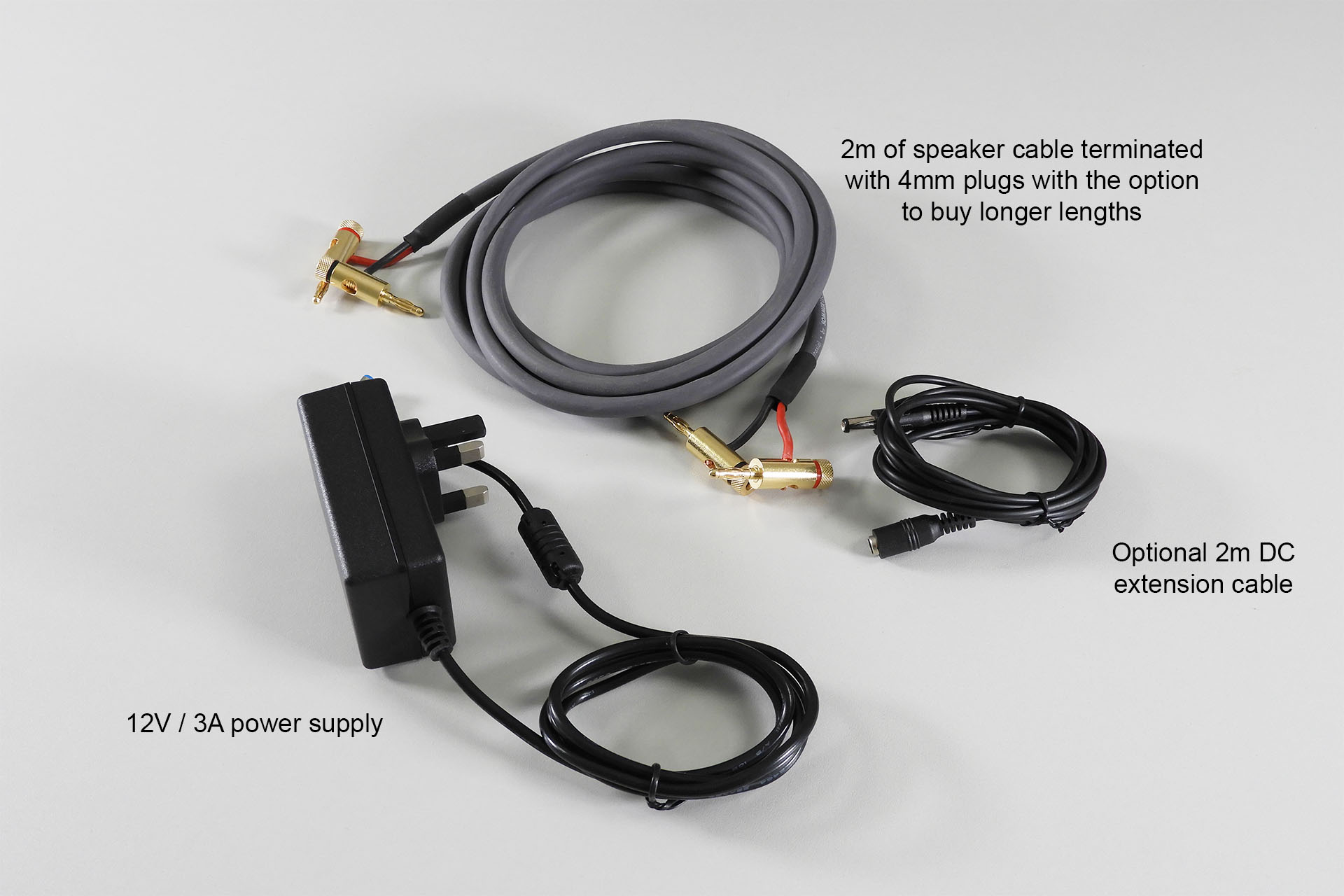 The crossover in the speaker that houses the module has been modified so for stereo operation, all you need to do is link the speaker terminals between the speaker with the module, to the speaker without the module. 2m of high-quality speaker cable terminating with 4mm plugs on each end is included with the speakers.