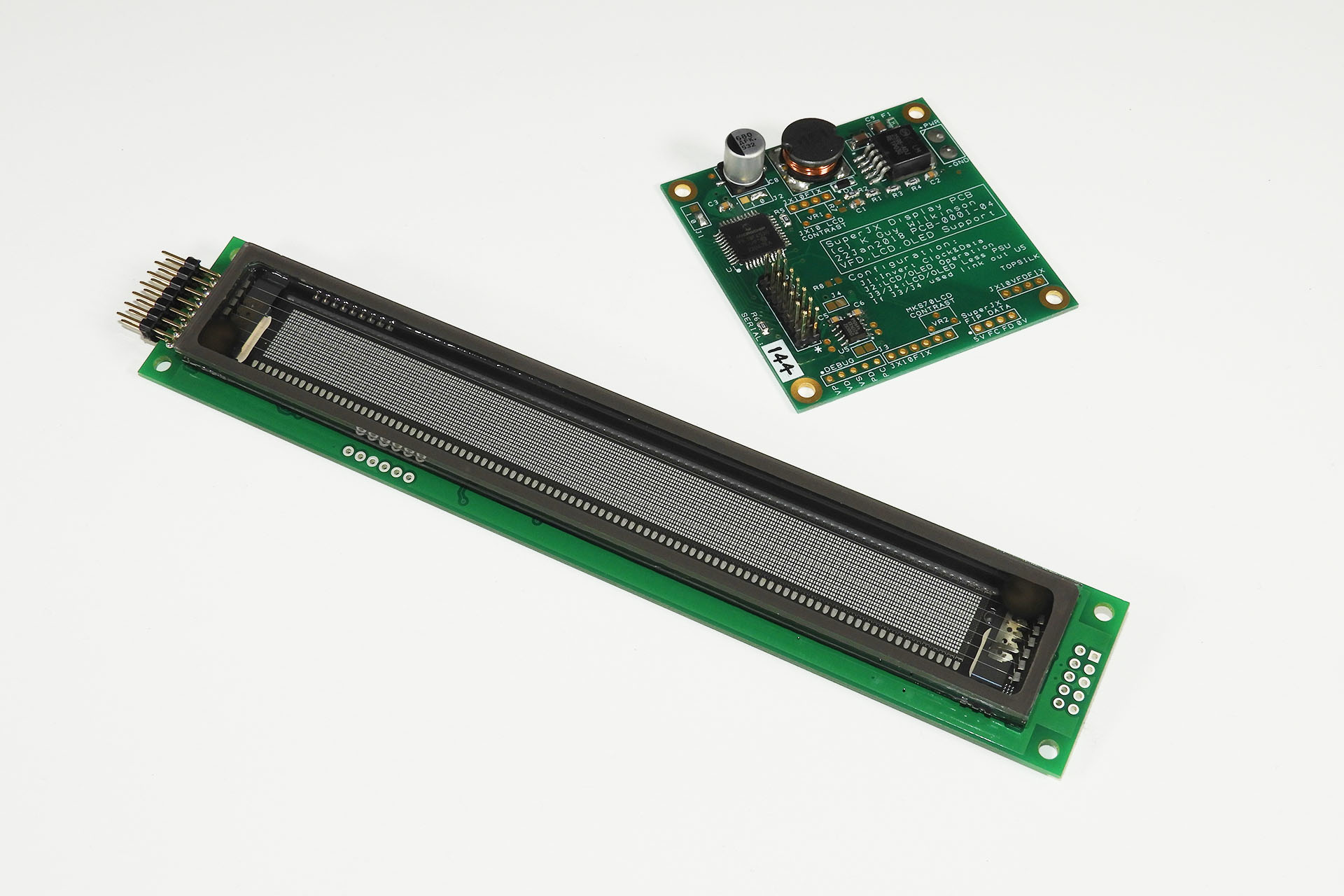 The two components of Guy Wilkinson's GU-280 VFD kit for the Roland Super-JX; the display itself and the controller module.