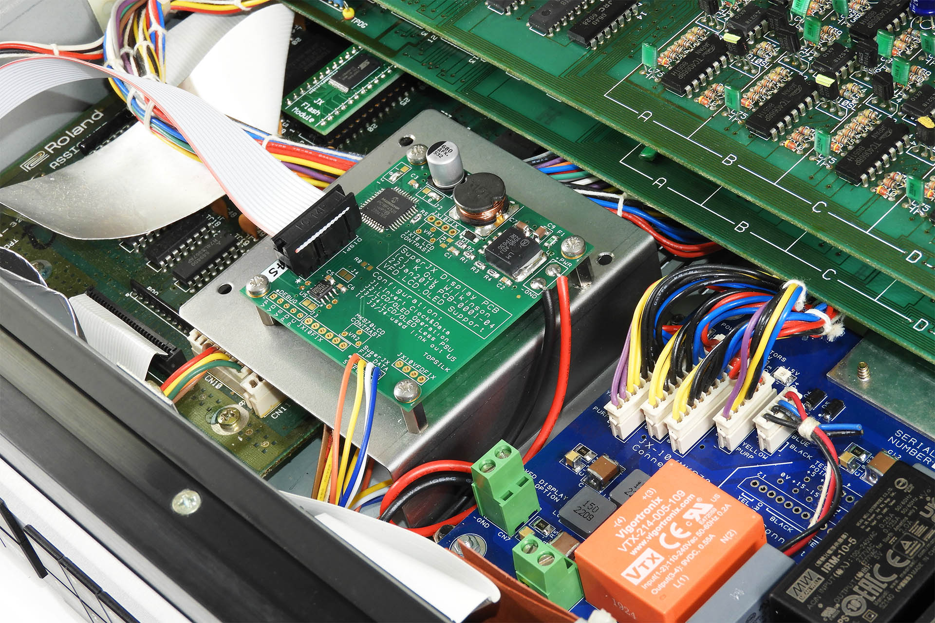 Custom mounting bracket for Vecoven PWM mod for Roland MKS-70 installed